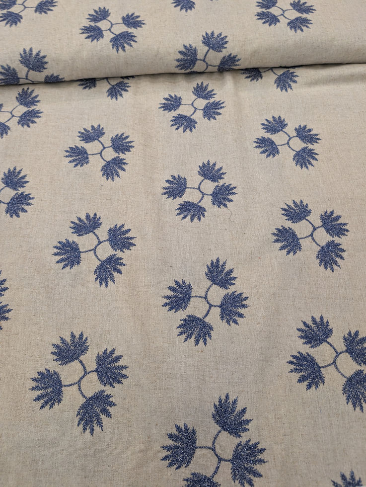 Бежов лен с бродерия от сини цветя