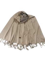 Италиански двулицев шал 82% вискоза 8% кашмир, 10% вълна с размер 180/70 см в светло бежаво и сиво. Мек и комфортен за носене, подходящ за всяка дреха.