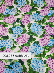 Бяла вискоза на лилави и сини хортензии