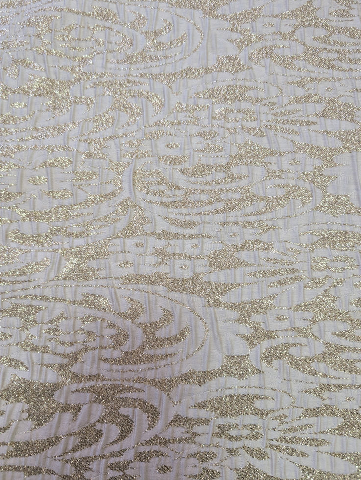 Ефектен плътен и луксозен плат в цвят слонова кост със златни орнаменти от лурекс.