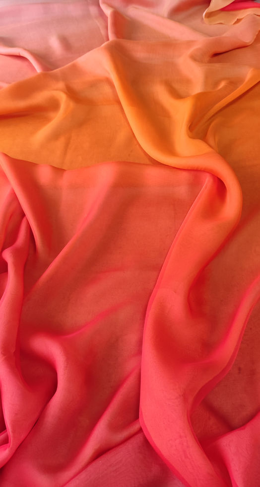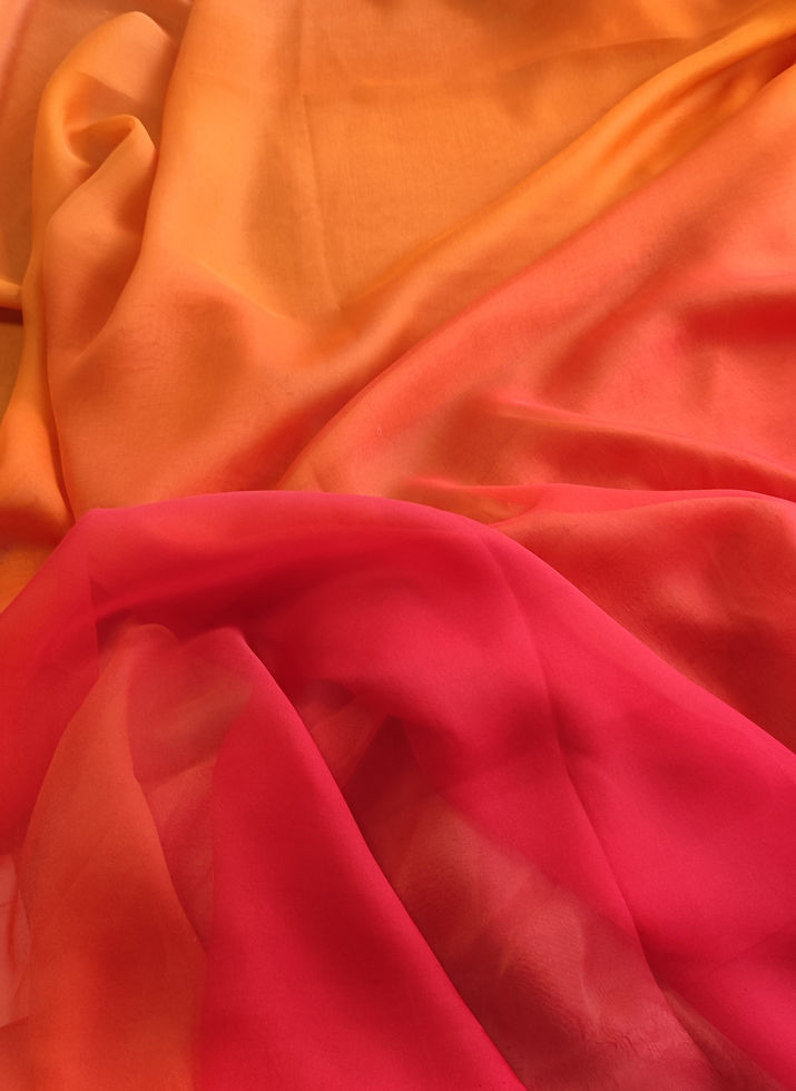 Копринен шифон в преливащи се нюанси на жълто, оранжево. червено.