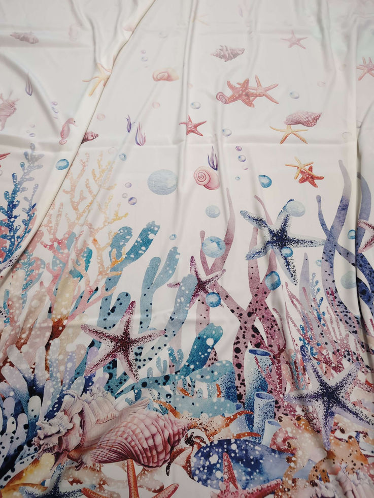 Основният цвят е натурално бял , завършващ с бордюр от рапани, морски звезди, корали .
