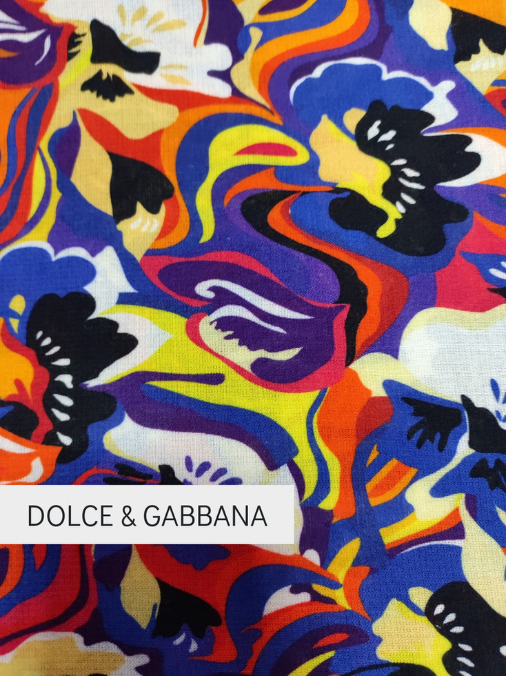 Платът е тънък и мек, пъстър,многоцветен и флорален. Цветовете са лилаво, синьо, жълто, оранжево, червено, бяло, черно.
